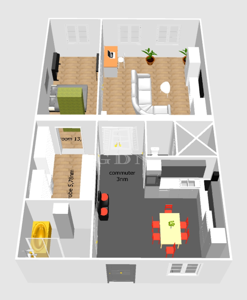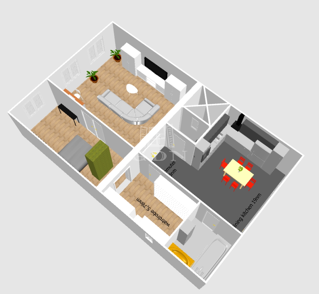- átépítést követően nagyméretű gardrób és mosókonyha kialakítás,