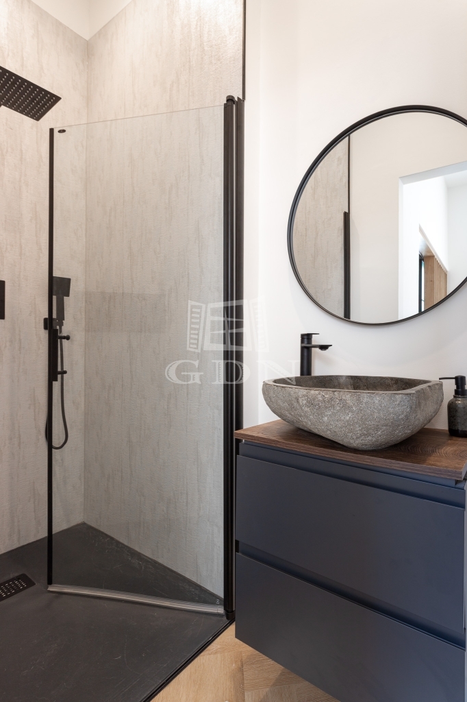A felújítás során magas színvonalú anyagok kerültek felhasználásra, amely modern és elegáns megjelenést biztosít.