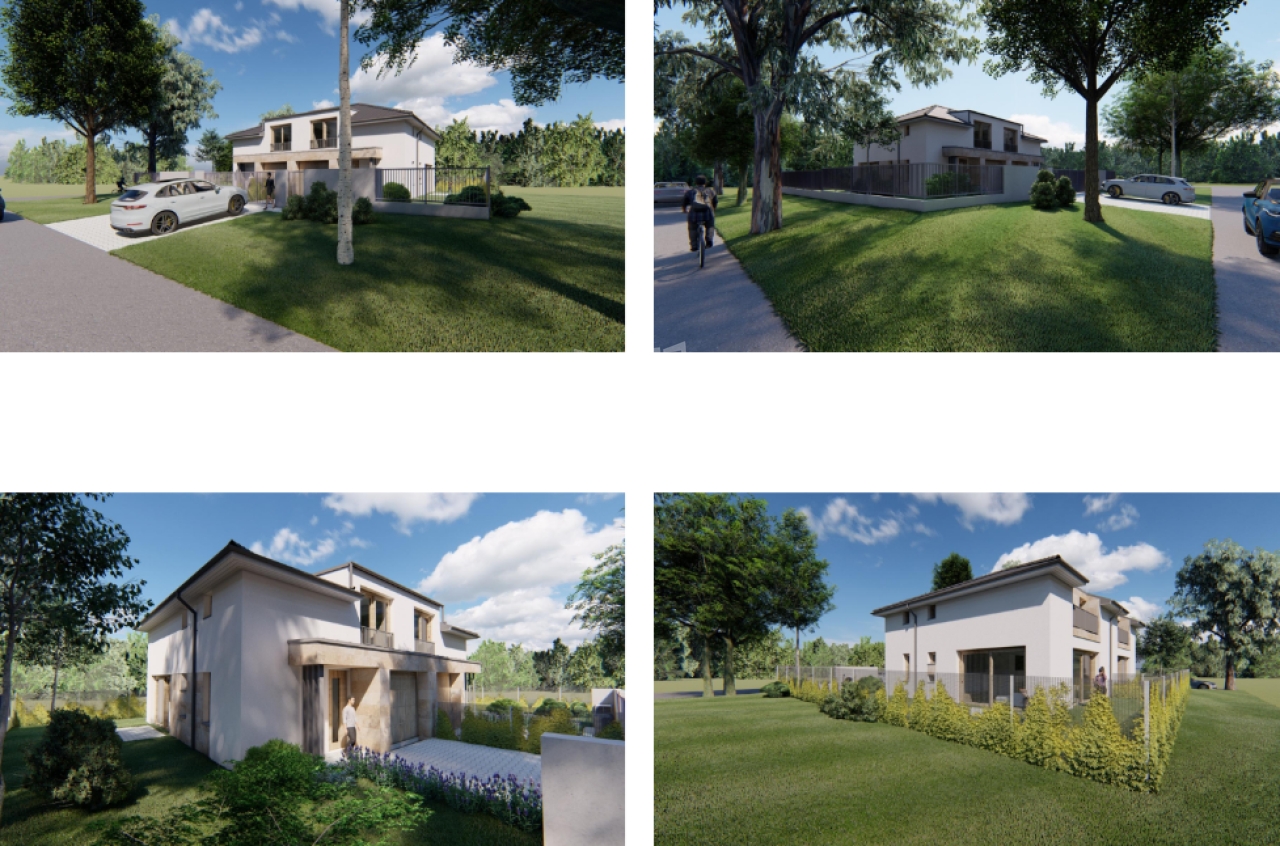 Az átgondolt elrendezésnek köszönhetően nappali–étkező–konyha egy légtérben, 3 külön nyíló hálószoba, 2 fürdőszoba, külön WC, háztartási helyiség és kamra biztosít kényelmes életteret családok számára. A világos nappali közvetlen kertkapcsolattal rendelkezik, nagy üvegfelületekkel.