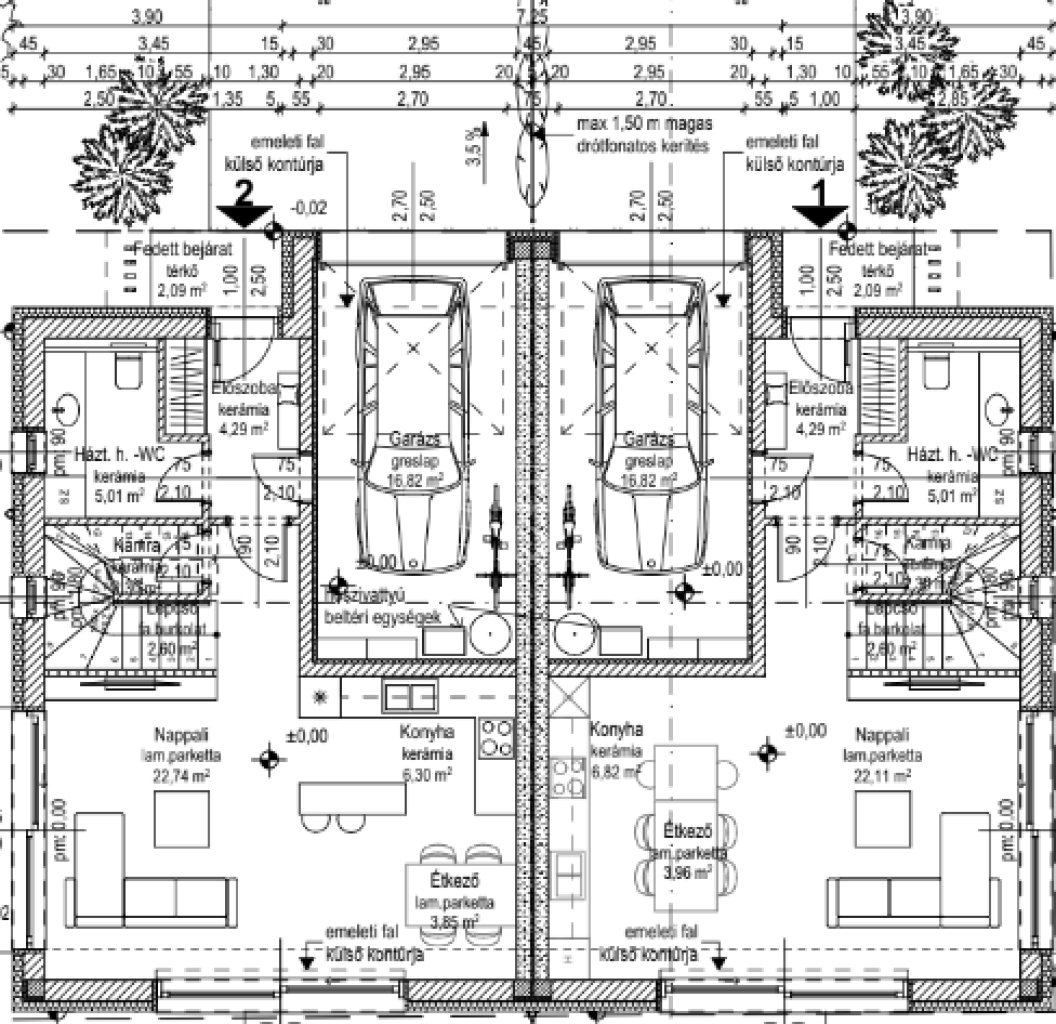 A műszaki tartalom korszerű és energiatakarékos: hőszivattyús rendszer, padlófűtés, mennyezeti hűtés-fűtés az emeleten, 3 rétegű nyílászárók, 15 cm szigetelés.