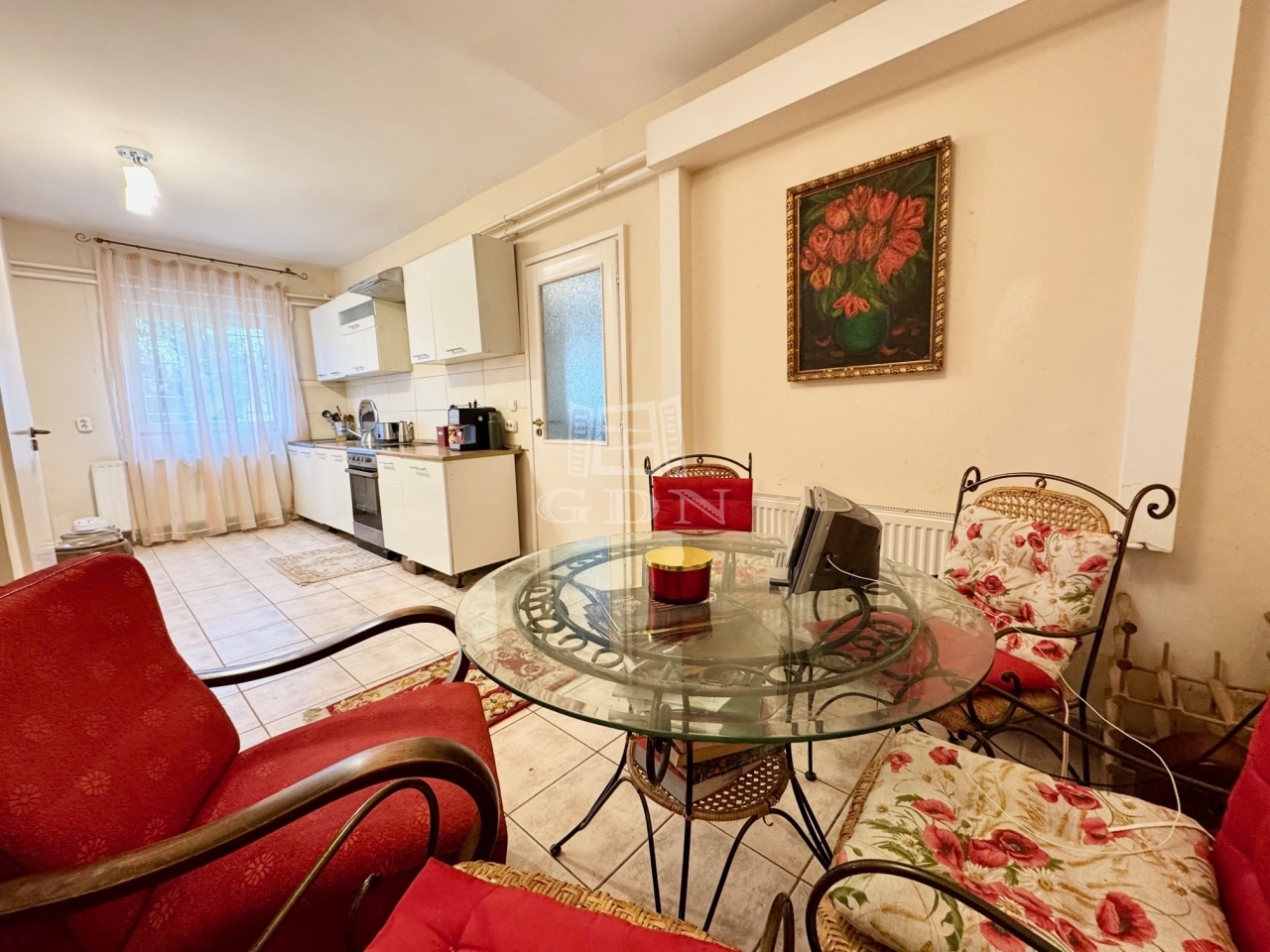 II. kerületben, Pesthidegkúton, kertvárosi környezetében, csendes utcában, 1989-ben épült, 3 lakásos társasházban, önálló helyrajzi számú, saját tulajdonú 389 nm-es ősfás kerttel rendelkező, földszinti elhelyezkedésű 150 nm-es lakóterületű, kiváló elosztású, nappali +3 hálószobás, napos-világos D-NY-i és É-K-i fekvésű, alacsony fenntartású, közösköltség: 15.000 Ft, egyedi mérésű, kombinált gázcirkó fűtésű, jó állapotú, közvetlen kertkapcsolatos lakás, beépített, gépesített konyhával, telken belüli felszíni gépkocsi beállóval, rendezett kerttel eladó!
