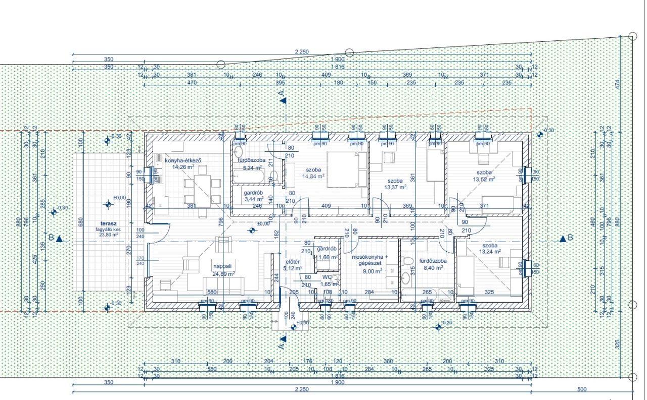 A ház praktikus elrendezésének köszönhetően négy külön nyíló szoba és egy tágas amerikai konyhás nappali biztosítja a kényelmes mindennapokat, miközben a korszerű műszaki tartalom alacsony fenntartási költségeket garantál.
