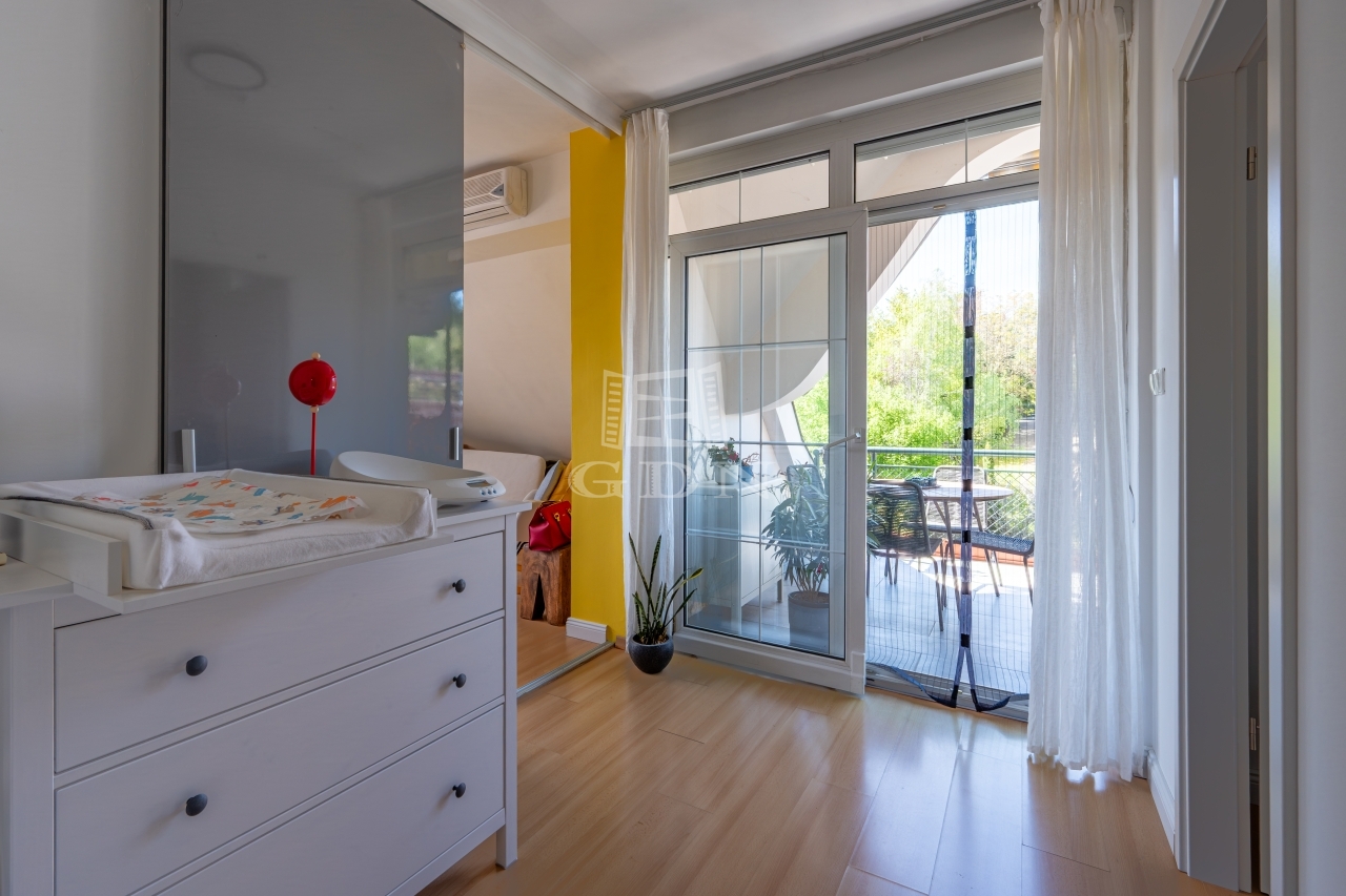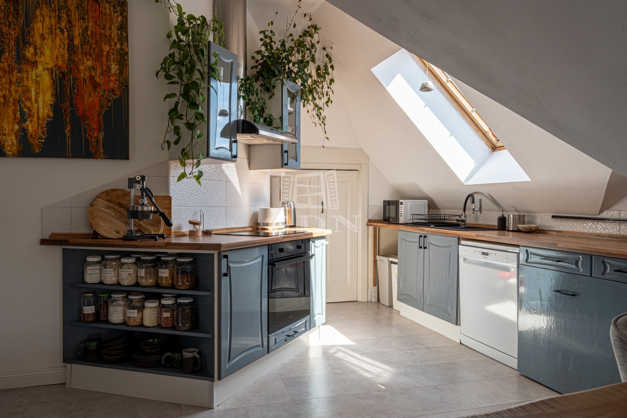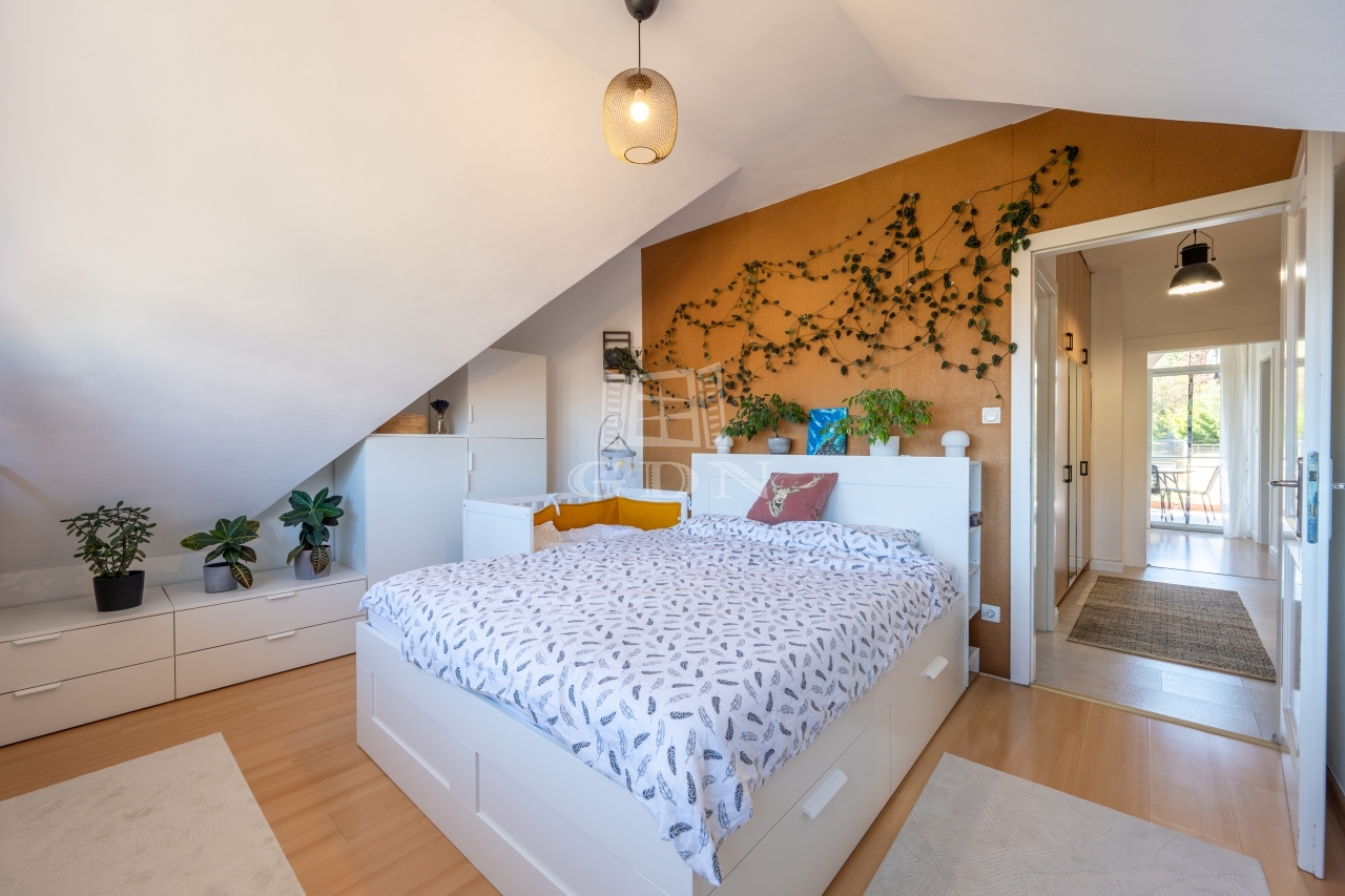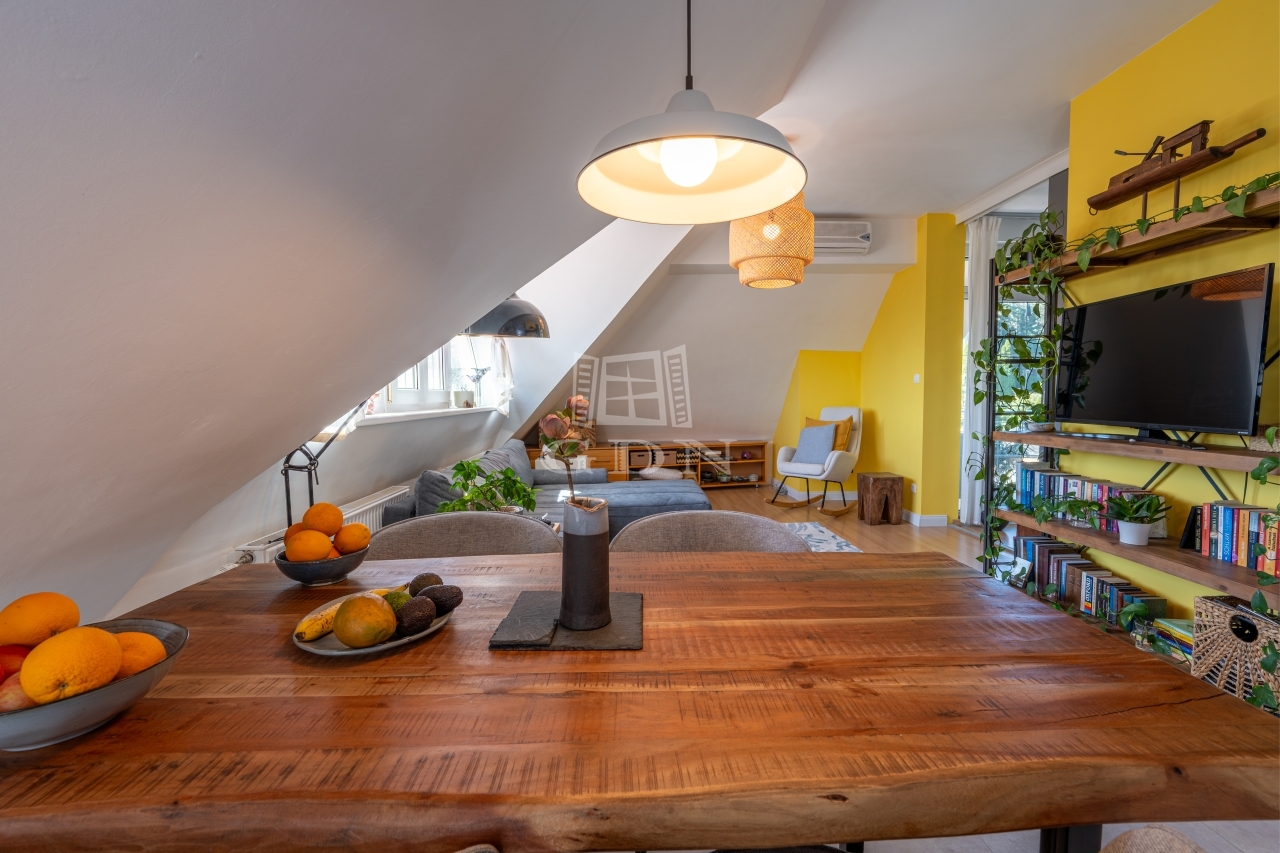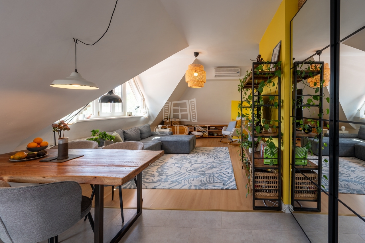 PANORÁMÁS tetőtéri, 74 nm-es lakás amerikai konyhás nappalival és 2 hálószobával (egyik szoba jelenleg 2 kisebbé alakítva).