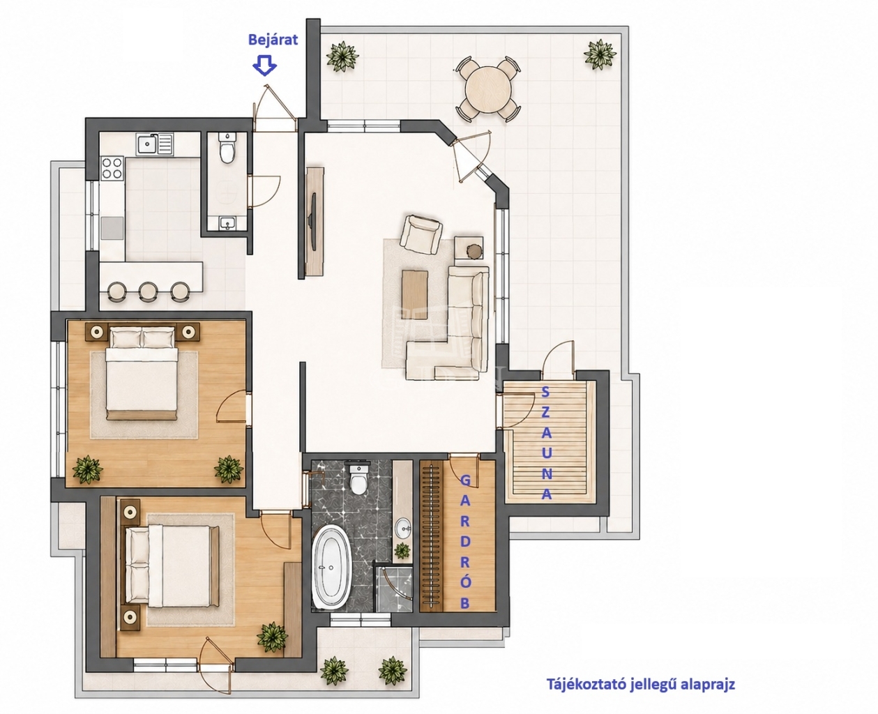 - saját, nagy méretű szauna, amely a lakásból és a teraszról is elérhető