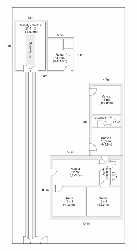 A 2314 m²-es, sík telek bőséges teret ad kertészkedéshez, gazdálkodáshoz vagy egyszerűen a pihenéshez.